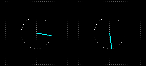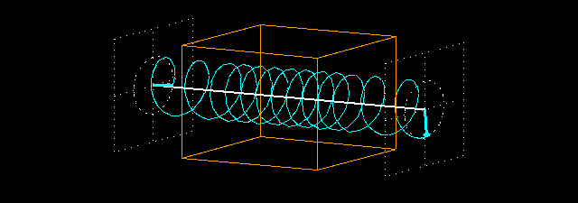 The following animation shows what happens when a circularly polarized wave traverses a non-absorbing medium with a refraction index greater than 1.0. We measure the field vector before and after the piece of material, just like on the previous page.